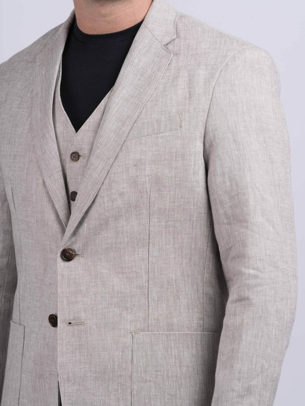 Top aus irischem Leinen mit Ärmel und Rückenfalte – Denim