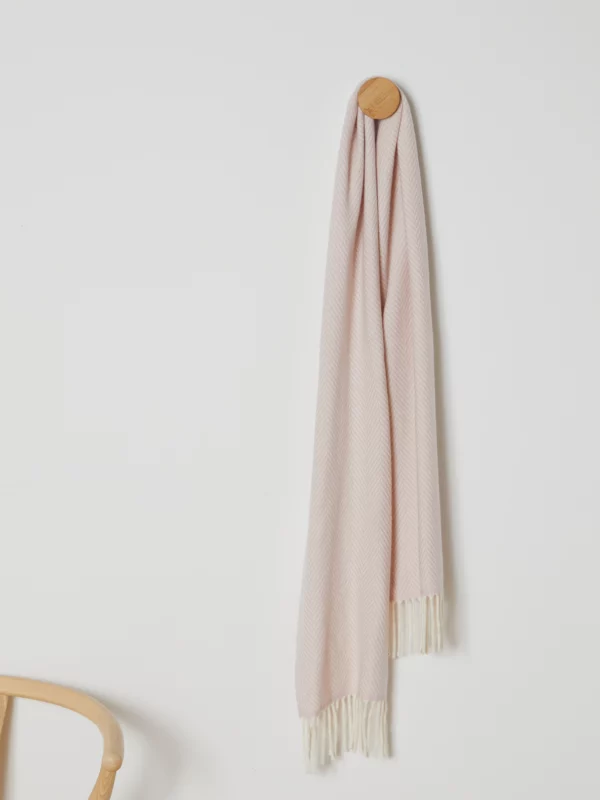 Schal aus Kaschmir und Lammwolle mit Fischgrätmuster – Rosa und Weiss