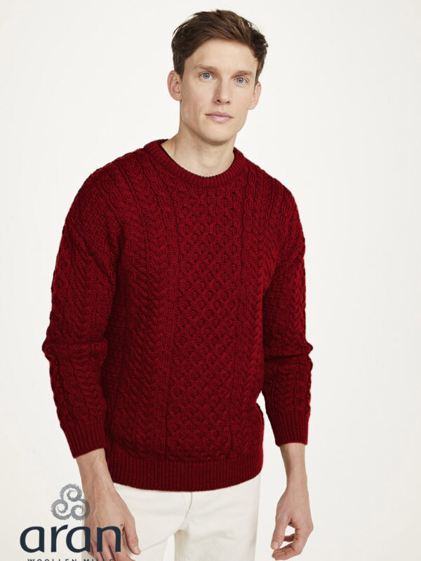Klassischer Aran-Pullover – Dunkelrot (Unisex)