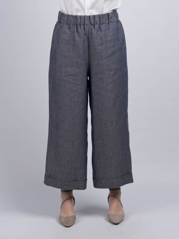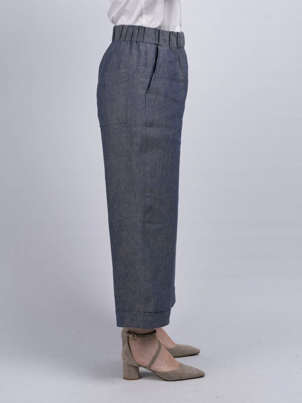Top aus irischem Leinen mit Ärmel und Rückenfalte – Sandfarben