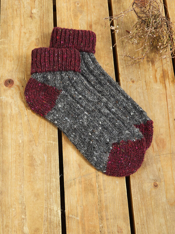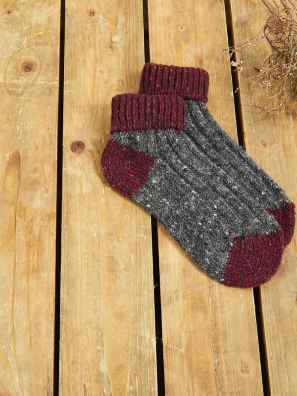 Knöchelsocken mit Umschlagbündchen für Erwachsene – Anthrazitgrau/Burgunderrot