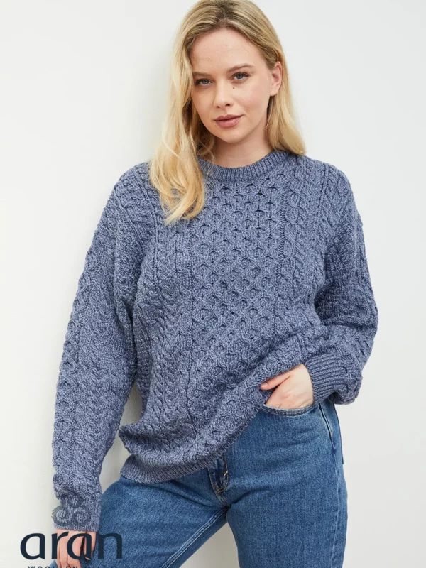 Klassischer Aran-Pullover – Denimblau (Unisex)