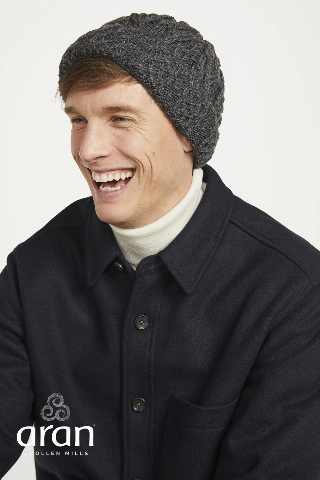Featuring a traditional Aran trellis pattern on the main body of the hat, with a complementing 1x1 trellis detail stitch on the turn up for extra warmth over the ears.