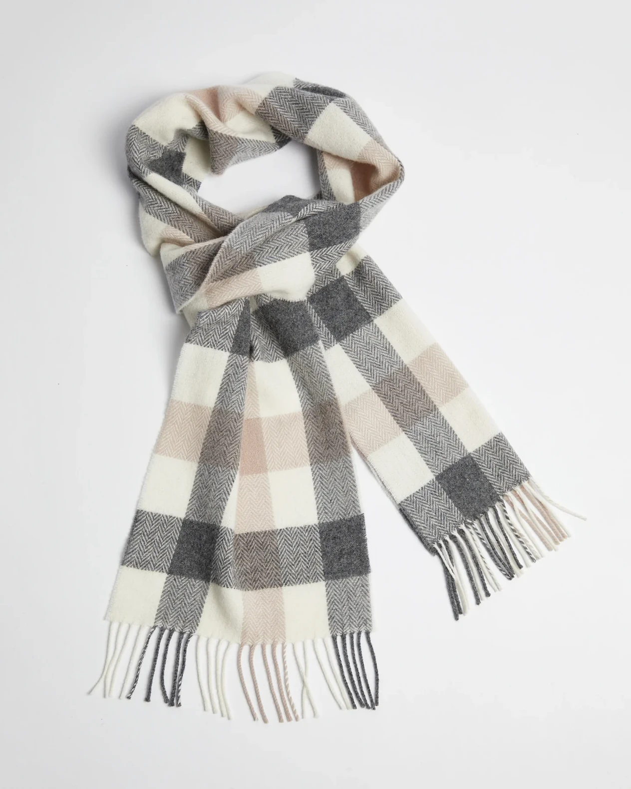 Schal aus LammwolleKlassisches Karomuster in Zartrosa, Grau und Crème