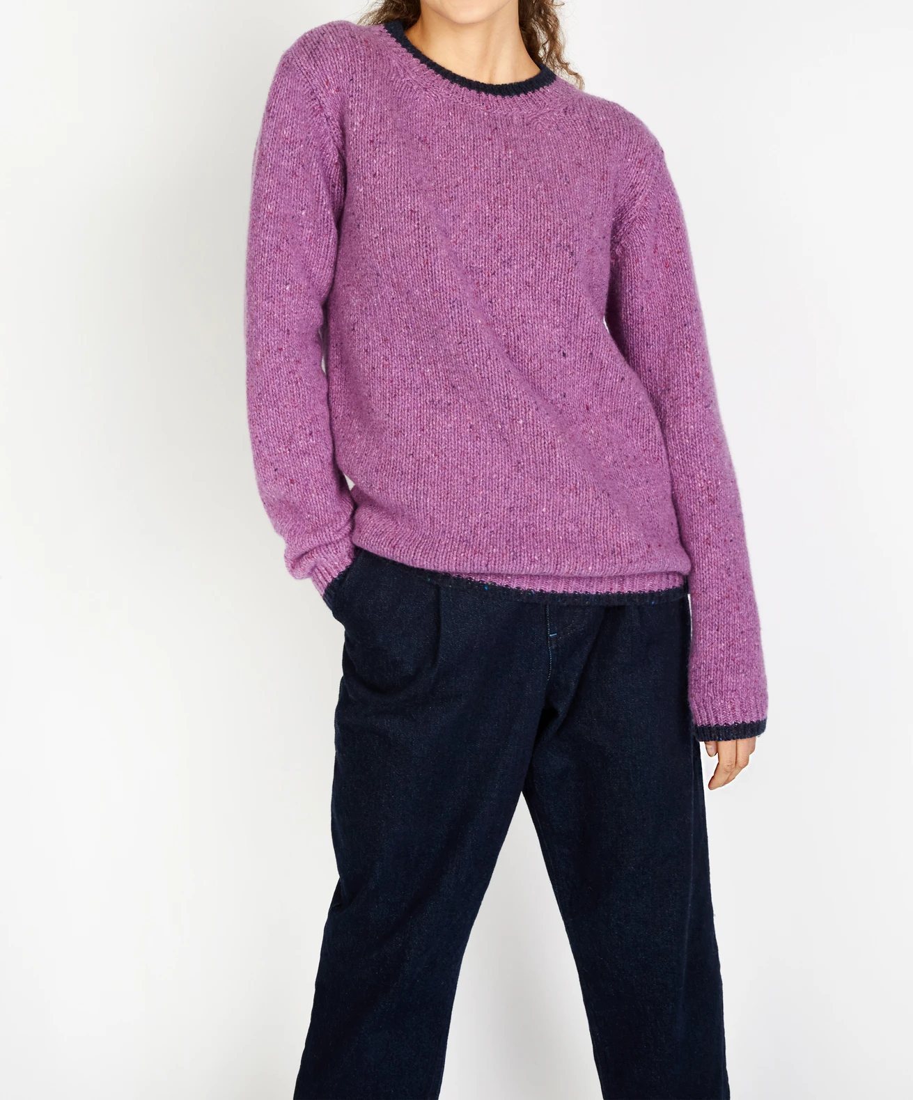 Der Rundhalspullover «Slaney» ist ein klassischer Jersey-Pullover mit Rippbündchen und zeitgenössischem Farbkontrast am Halsausschnitt, an den Ärmelbündchen und am Saum.