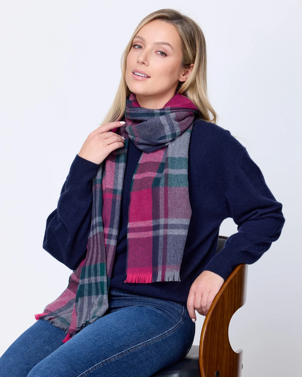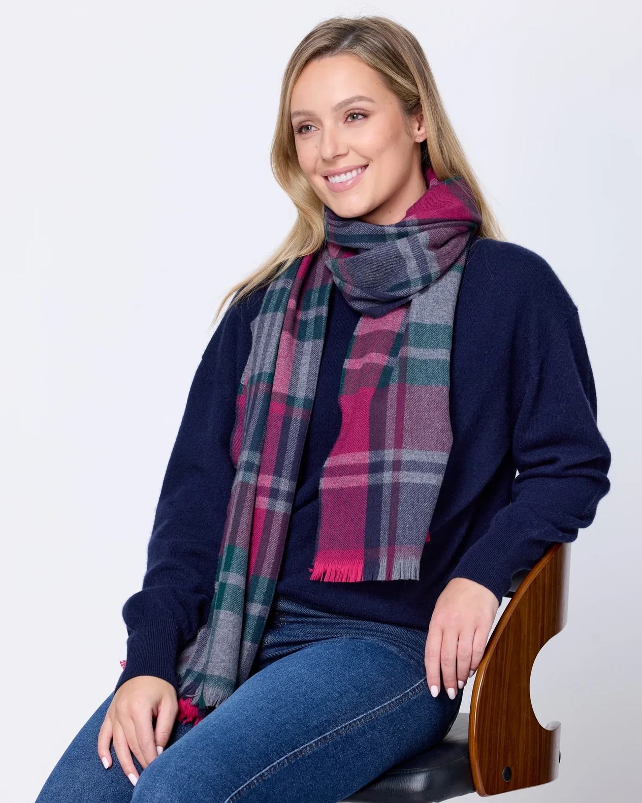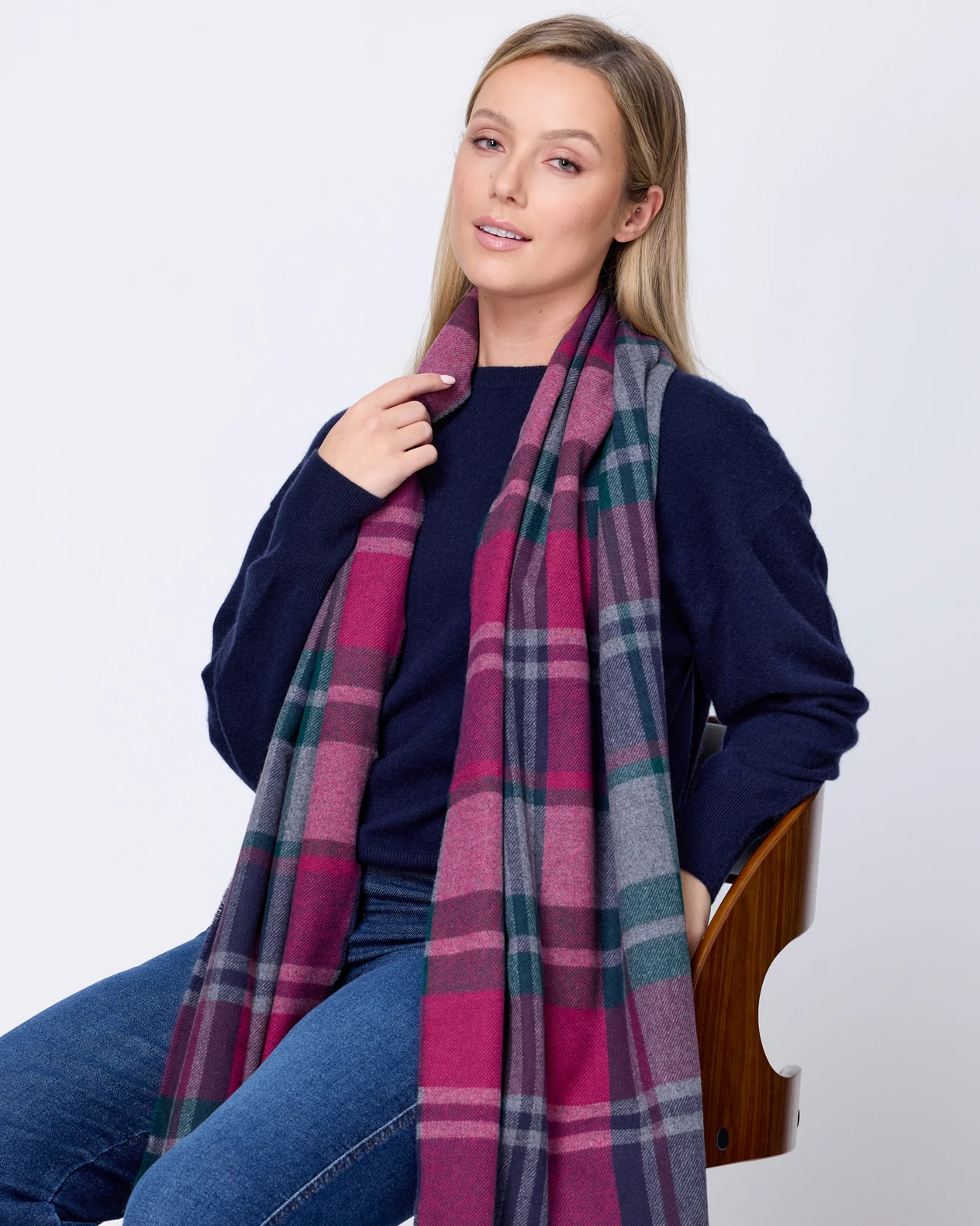 Shop / Accessoires / Schal aus Kaschmir und weicher Wolle – Petunie mit Tartanmuster