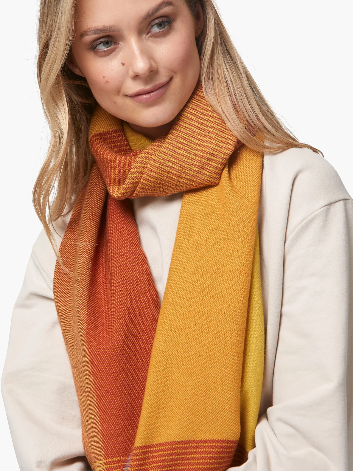 Shop / Accessoires / Schal aus superweicher Merinowolle – Gelb und ockerfarben