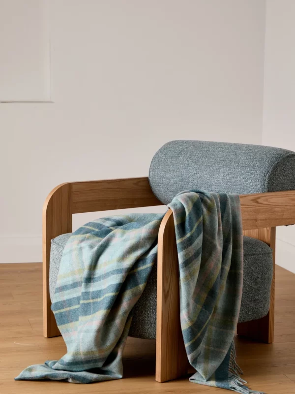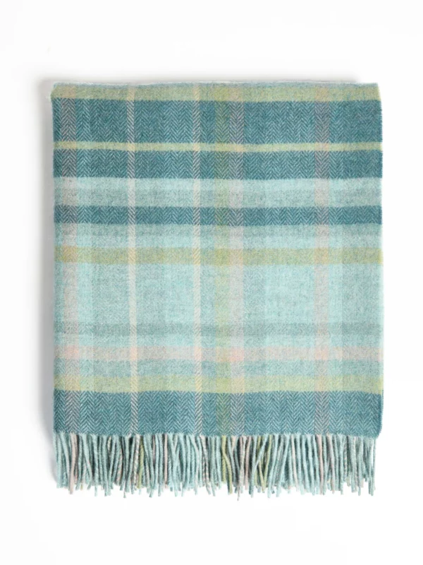 Überwurf «Rosslare» aus Lammwolle – Türkisblaues Tartanmuster